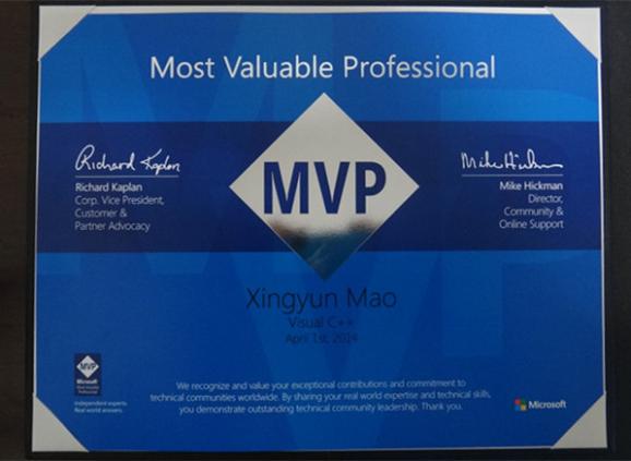 近日,我院2013级研究生毛星云收到来自美国微软公司发来的贺信,祝贺他在历经长达数星期的激烈竞争与评选中,从众多优秀的竞争者中脱颖而出,成为本年度微软"全球最有价值专家"(Most ValuableProfessional,MVP) 大奖的获奖者。