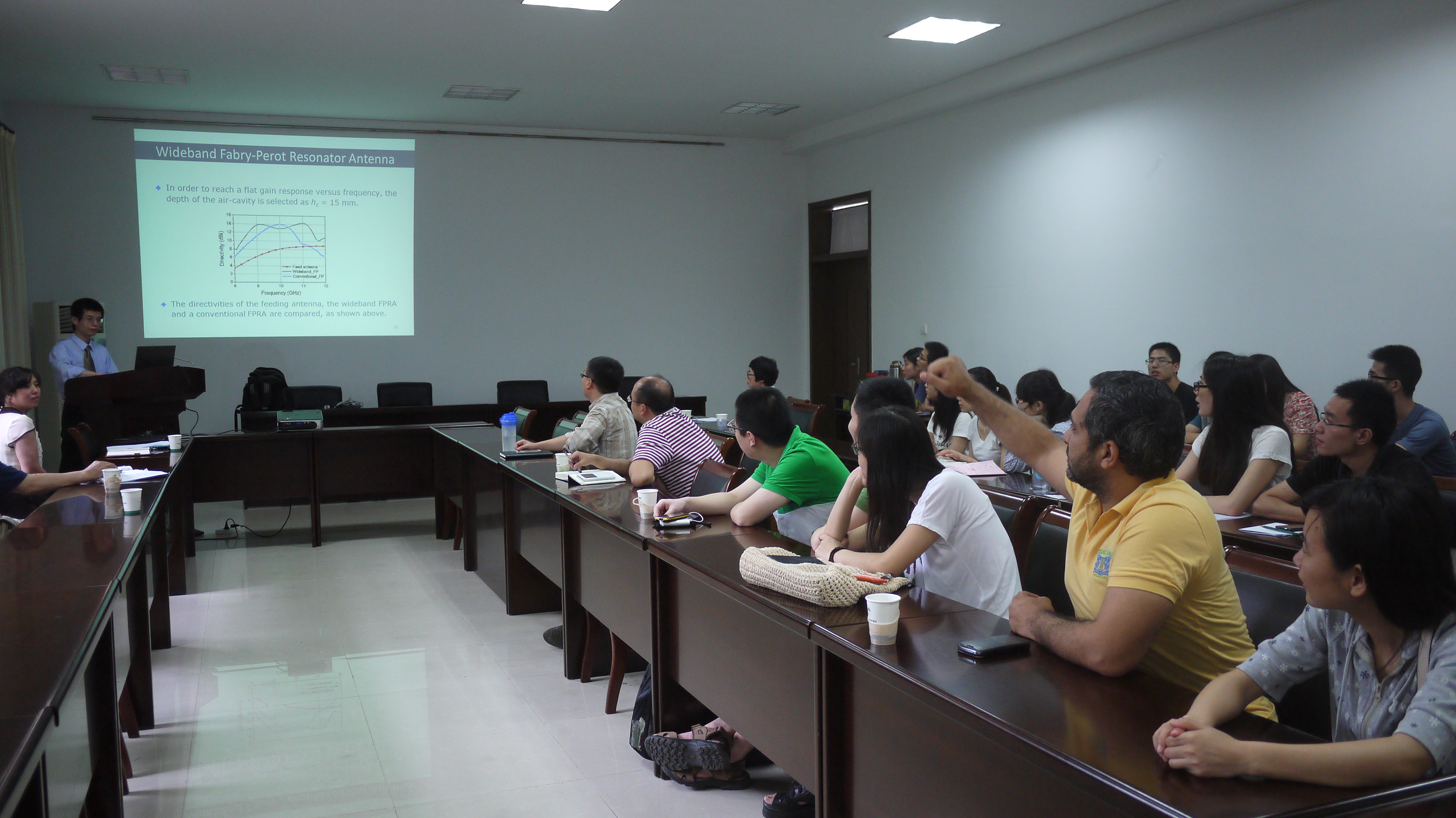 访问期间,曾庆生教授为英国正版365官方网站师生做了题为“超宽频带和窄频带集成介质谐振天线”、“使用两层互补频率选择表面的宽频带Fabry-Perot谐振天线”、“分层有耗色散媒质中电磁波的时域分析”、“ 基于拉普拉斯逆变换数值算法的电磁脉冲瞬态分析和应用”等四场学术报告,就计算电磁学和超宽频带天线设计最新研究进展做了详细的介绍。曾教授丰富的报告内容和深入细致的讲解给师生们留下了深刻印象。报告会上,师生们也就自己在科研中所遇到的问题与曾教授进行了交流,曾教授结合自己多年来的研究经验给出了建设性的意见,给予师生极大的启发与帮助。