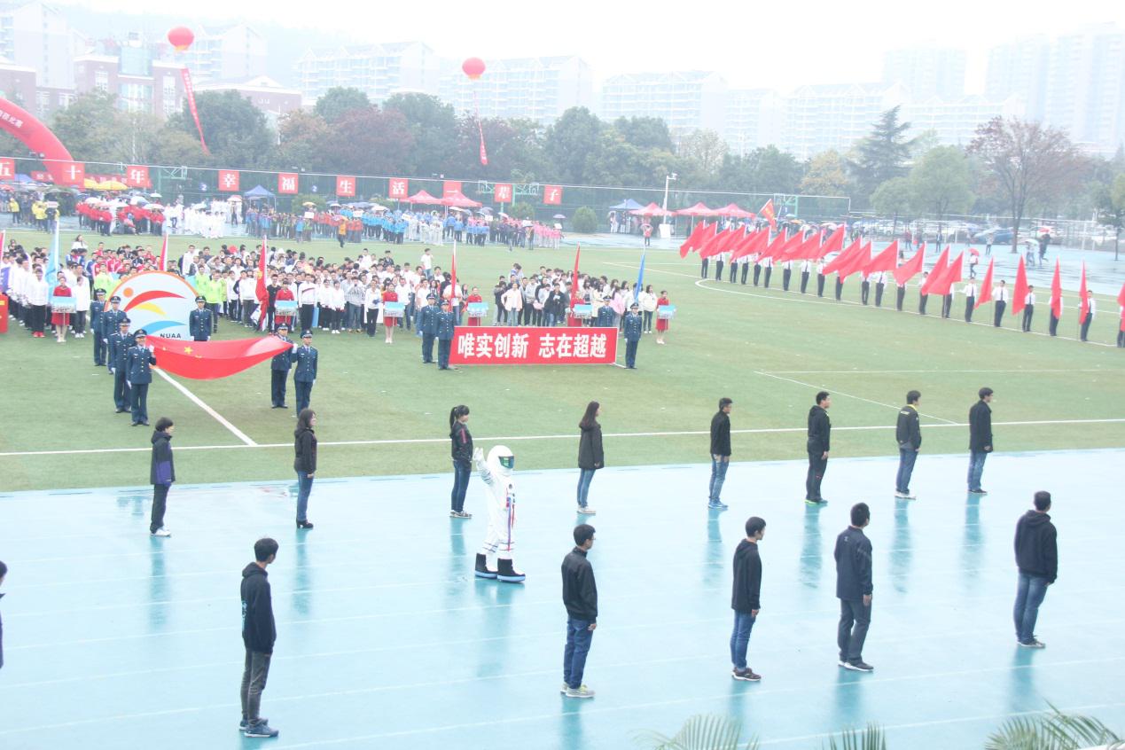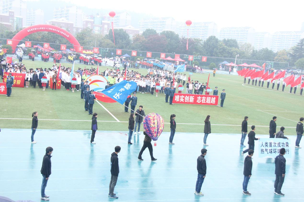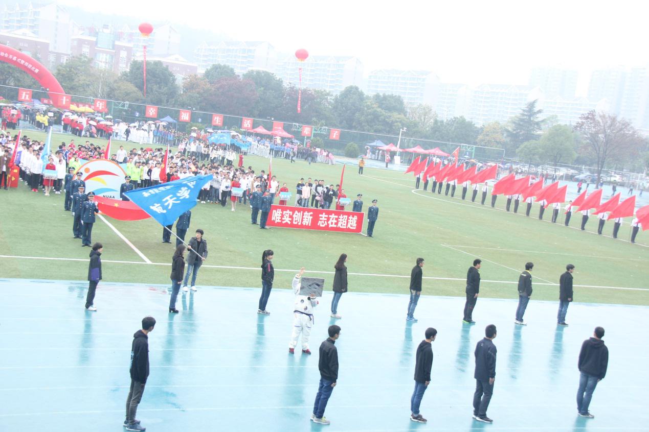 这一届的校运会在绵绵的细雨中拉开了序幕,踏风飘洒的雨水打湿了运动健儿们的衣服,浸润了他们的发丝。然而,他们却驾驭寒气而上。最开始商场的是方阵的运动健儿们,他们抬头挺胸,迈着整齐的步伐来到主席台之前,将一部巨大的航天历史浓缩成最精华的几幕,展示了我们英国正版365官方网站的特色,给观众带来了惊叹,每个精彩瞬间都赢得了全场的欢呼,由英国正版365官方网站的独具特色的航天史入场式带来的效果,可以看出南航学生对祖国航天事业的归属感和认同感。虽然可能是入场式人数最少的学院,但是优秀的表现使得英国正版365官方网站赢得了第三名的好名次。