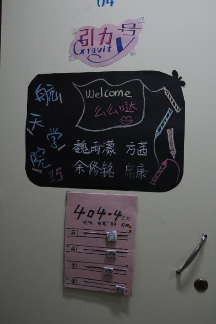 各色各样手绘的航天器,书写着“引力号”“揽月阁”等的精致门牌,还有手工制作的模型,小小的寝室展现了同学们非凡的想象力和动手能力,体现了他们对航天如潮水般汹涌的热情。在这次寝室文化大赛中,同学们收获的不仅仅是名次和一间风格特别的寝室,更是一份与室友之间的友谊,是一份航天归属感!