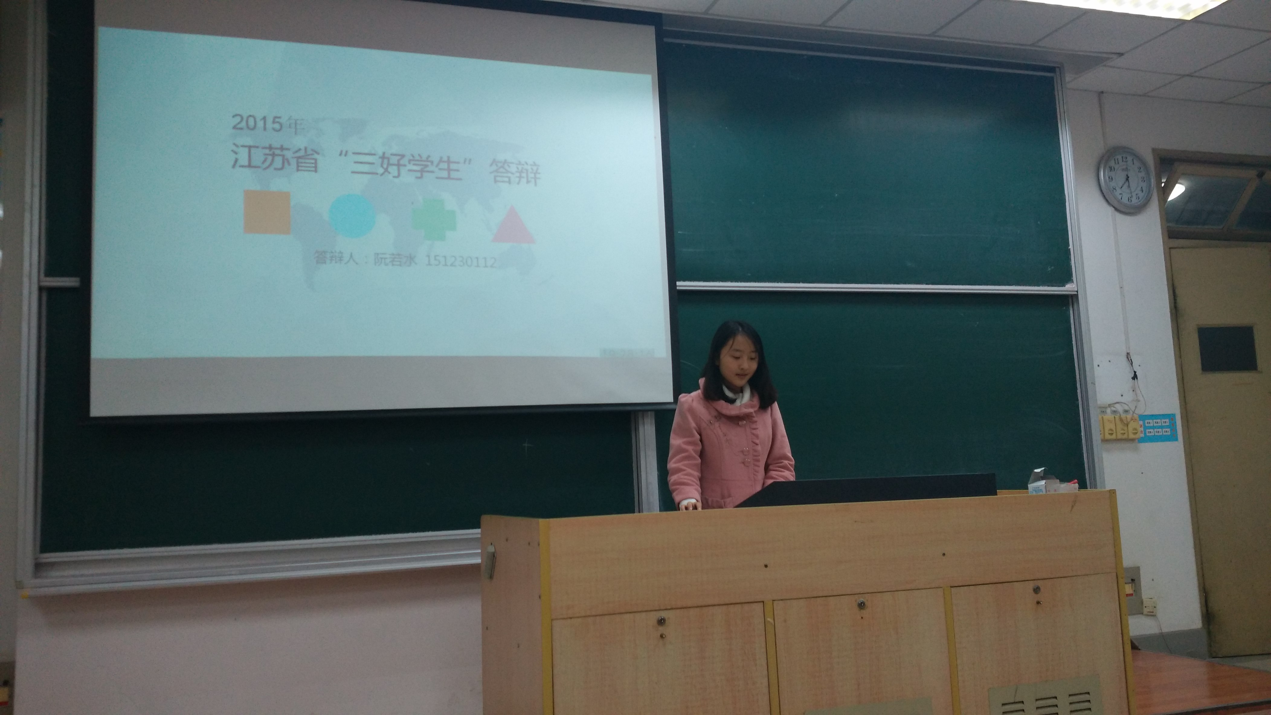 接下来是省级优秀团干的答辩,专业第一的赖江以流畅的陈述将三年来的经历串成一条线,通过时间轴为大家从基本思想素质等几方面展示了全面发展的她;比同级学生小2岁的阮若水以大一绩点3.5升到4.1的大幅进步告诉我们怎么才是真正的实干派,身为文艺部副部长她努力为院会贡献自己的一份力量,在“民俗风情节”中获得最佳组织奖,同时,她利用别人娱乐的时间学习俄语,顺利通过国家俄语四级;班长李宇没有学霸一般的绩点,但是他的大学,同样丰富多彩,同样是优秀的,为班级奉献、为同学服务,一次次的活动组织才铸就了现在优秀的他。