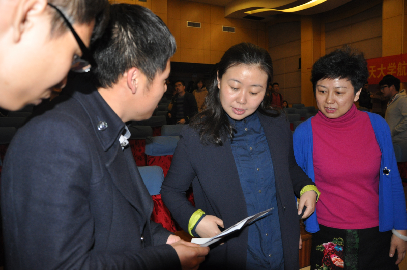 宣讲会上,航天二院207所谢晓丹主任对暑期实践团招募的具体内容作了详细的介绍;南航校友航天二院二部研究室主任刘大军分享了他的职业发展经历,给同学们上了一堂精彩的职业生涯规划课;航天二院207所人事处处长滕燕、二部人事处副处长杨莹就现场同学的提问进行了沙龙互动。