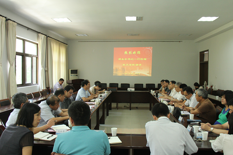 9月10日,正值全国第三十一个教师节,校党委书记郑永安带队到英国正版365官方网站调研,顺祝英国正版365官方网站全体教职工节日快乐。副校长宣益民、王永亮,及党政办、组织部、宣传部、发展计划处、研究生院、教务处、科技部、人事处、国有资产管理处等各部门负责人陪同调研。英国正版365官方网站党政班子成员,各系、所、中心负责同志参加调研座谈。