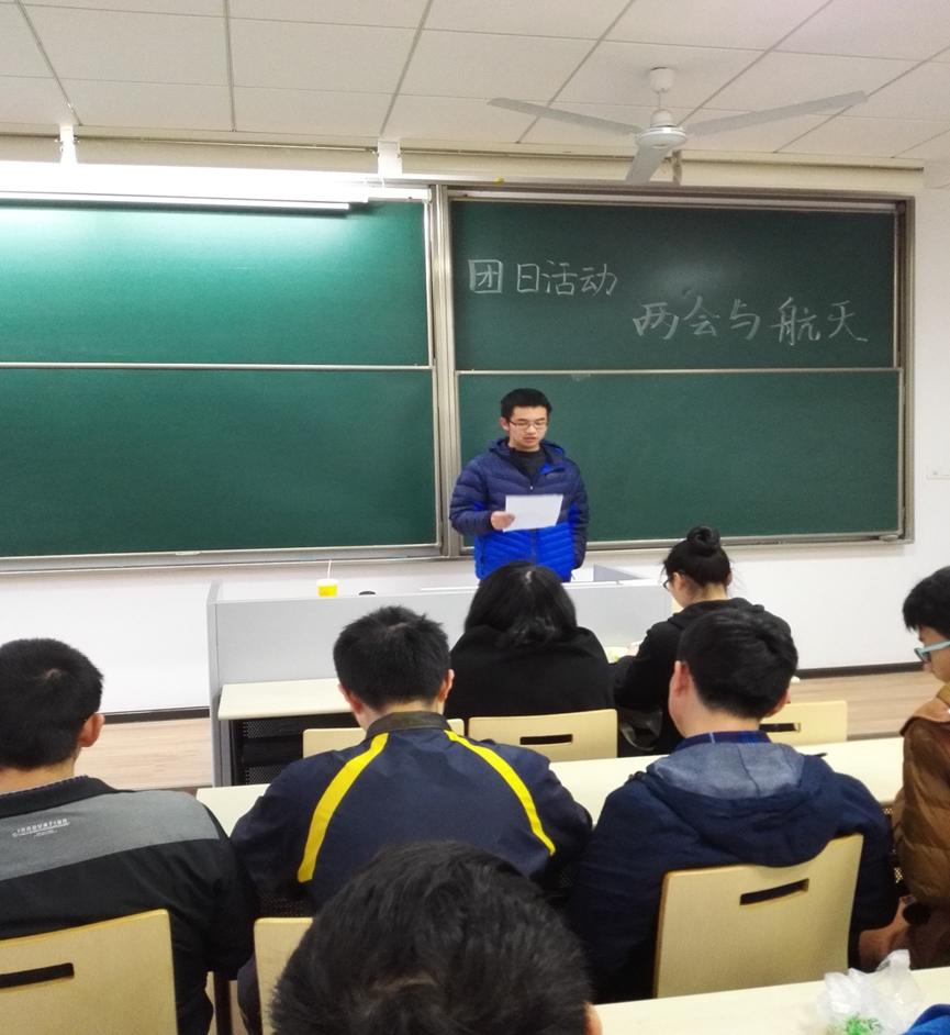 1515100支部和1514301支部以“两会中的航天”为主题开展了活动。首先由班长介绍活动主题,然后由宣传委员上台对同学们宣讲了航天最新动态、航天事业的十三五规划,鼓励同学们直接用手机在线查阅学习相关内容,团支书做最后总结。