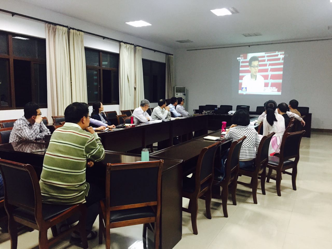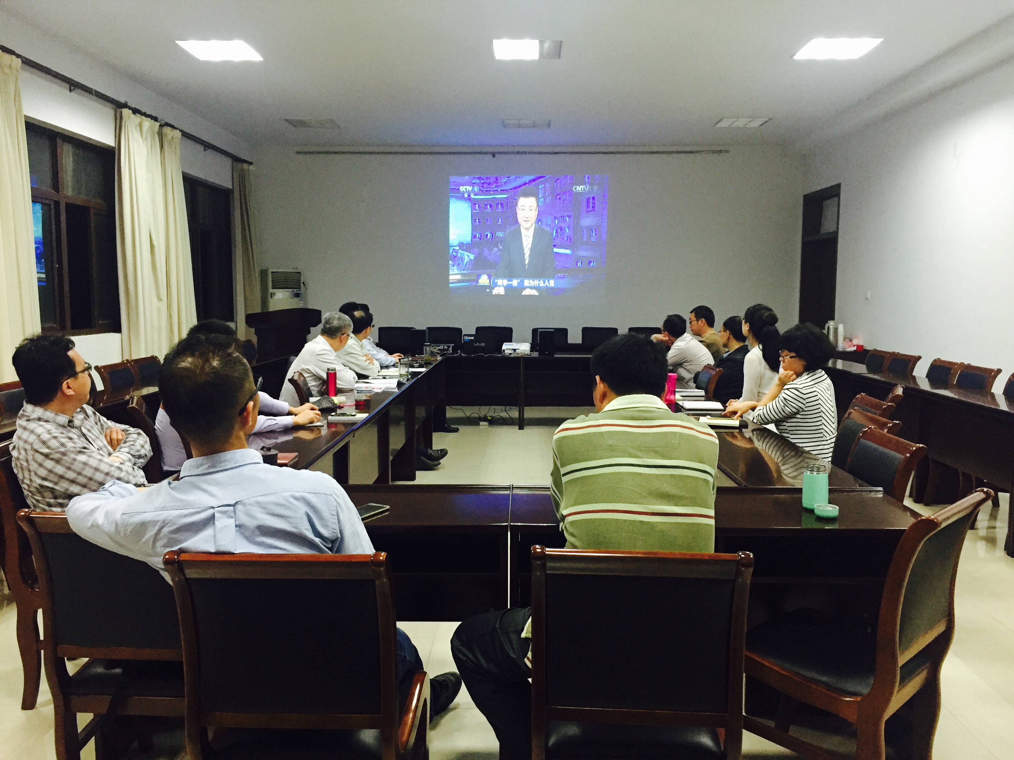 全体参会人员首先观看了由学院一分钟团队制作的一分钟“两学一做”微视频,接着全程观看了《新闻联播》与《焦点访谈》。