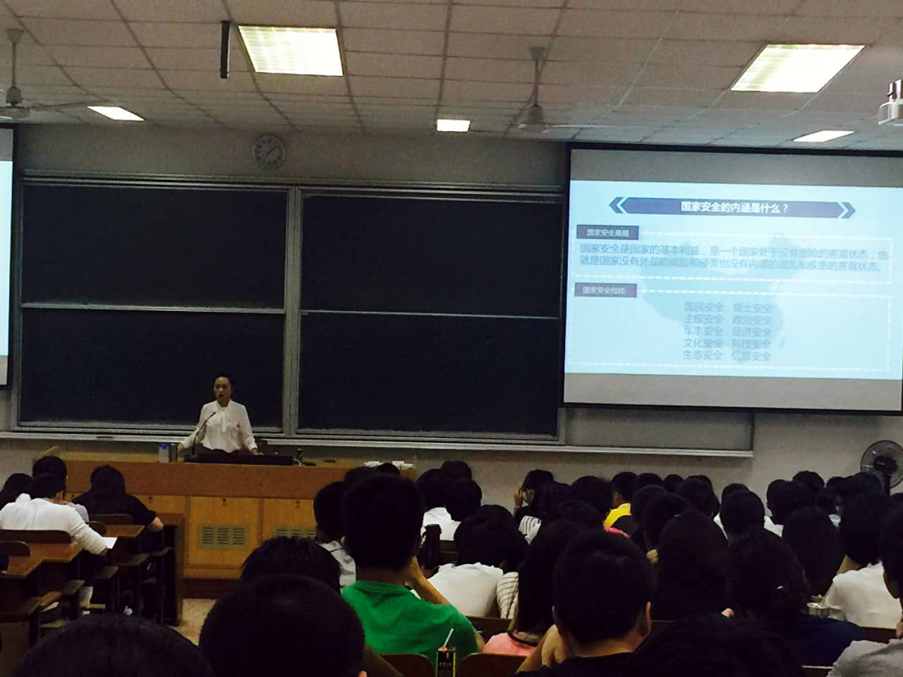 第二阶段,刘洁老师又从国家层面讲解了我们面临的国际局势、潜在的危险和挑战。她还特别敬告同学们要理性看待网上的言论,特别是要禁止翻墙这种行为,对于境外一些反动势力、恐怖组织的洗脑活动要擦亮双眼。