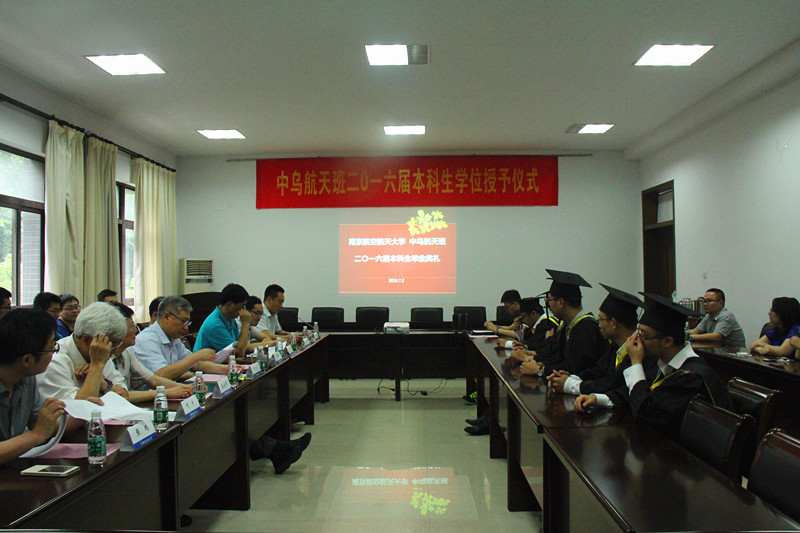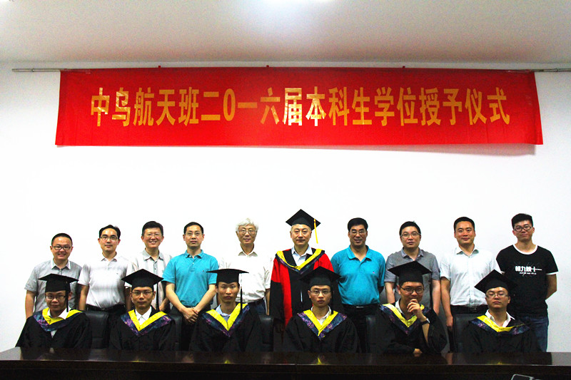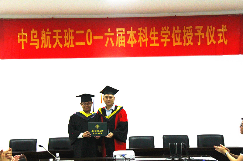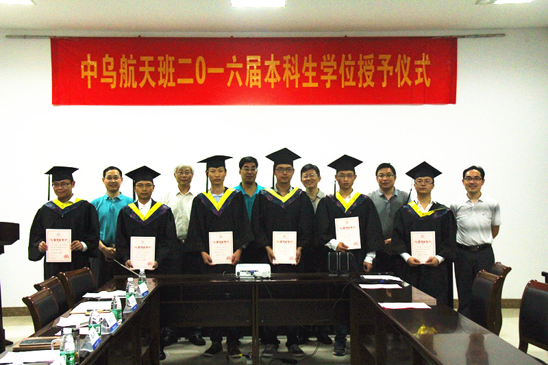 7月2日下午,我校中乌航天班2016届本科生毕业典礼暨学位授予仪式在明故宫校区A3-318会议室举行。国际合作交流处处长金泉元、国际教育学院院长何宁、学校教务处副处长王敬东、党委宣传部副部长孔令华、学生处副处长张鹏等职能部门领导以及英国正版365官方网站院长陈卫东、院党委书记季海群出席仪式,中乌航天班2016届毕业生以及2015级中乌航天班全体同学参加了仪式。仪式由英国正版365官方网站党委副书记李和新主持。