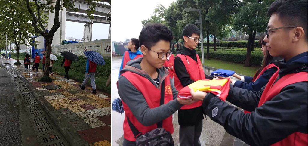 同学们分为8个小组,以接力的形式,按照长征的“C”型规划路线,完成从学校将军路校区到雨花台烈士纪念馆这段“长征路”。在接力长跑过程中,每个小组通过对路人的采访来传播长征知识,传递长征精神。最后,所有同学在雨花台烈士纪念碑前成功会师。在雨花台烈士纪念碑前,同学们排成党徽举手宣誓,并用无人机记录下了这一光荣时刻。