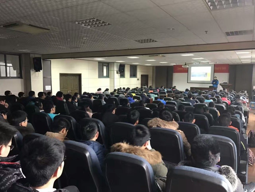 在参观了两个实验室,对微小卫星有了直观的印象后,康国华教授又为同学们做了一场《微小卫星---太空精灵》的科普报告,生动形象的介绍了微小卫星的起源、发展和现状;报告最后以“成不了来自星星的你,可以让星星来自你”结束,在同学们中引起了强烈共鸣。报告使得同学们对微小卫星有了真切的了解,康老师还与同学们分享了卫星的研制与发射历程,道出了科研工作的酸甜苦辣。