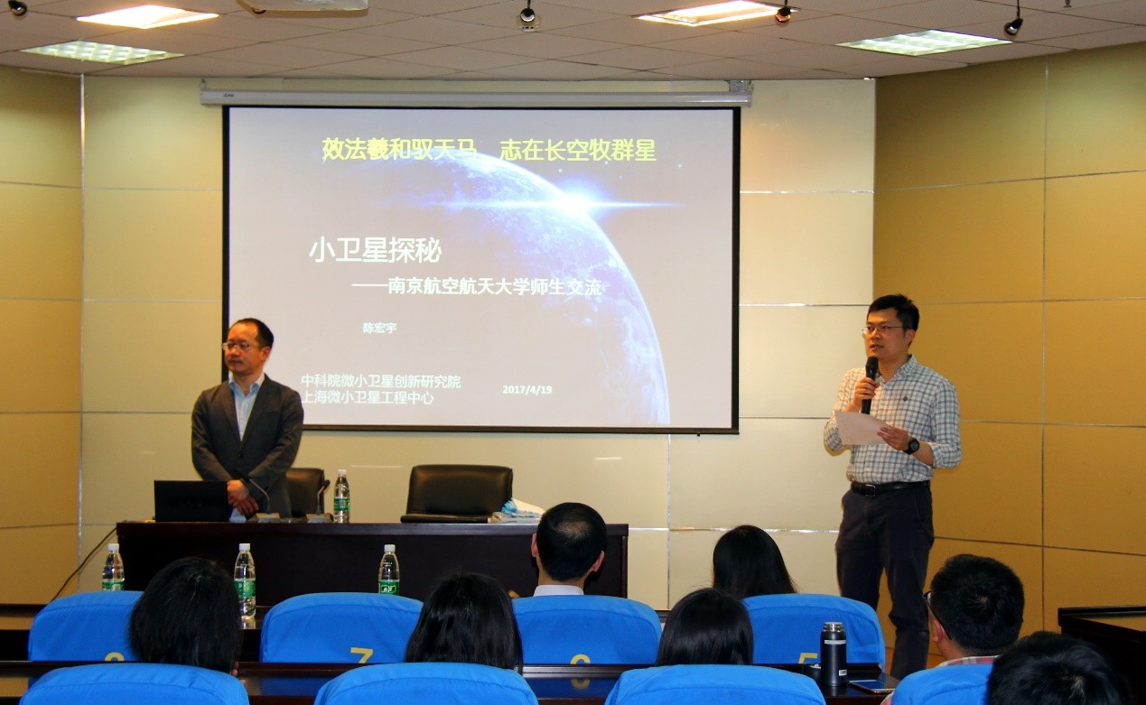 2017年4月19日,中科院微小卫星创新研究院上海微纳卫星研究所所长陈宏宇教授应邀来校访问,并作了题为《微小卫星探秘》的报告。报告会由微小卫星研究中心主任康国华教授主持,英国正版365官方网站党委书记季海群等出席了报告会,共有200余名师生到场参加。