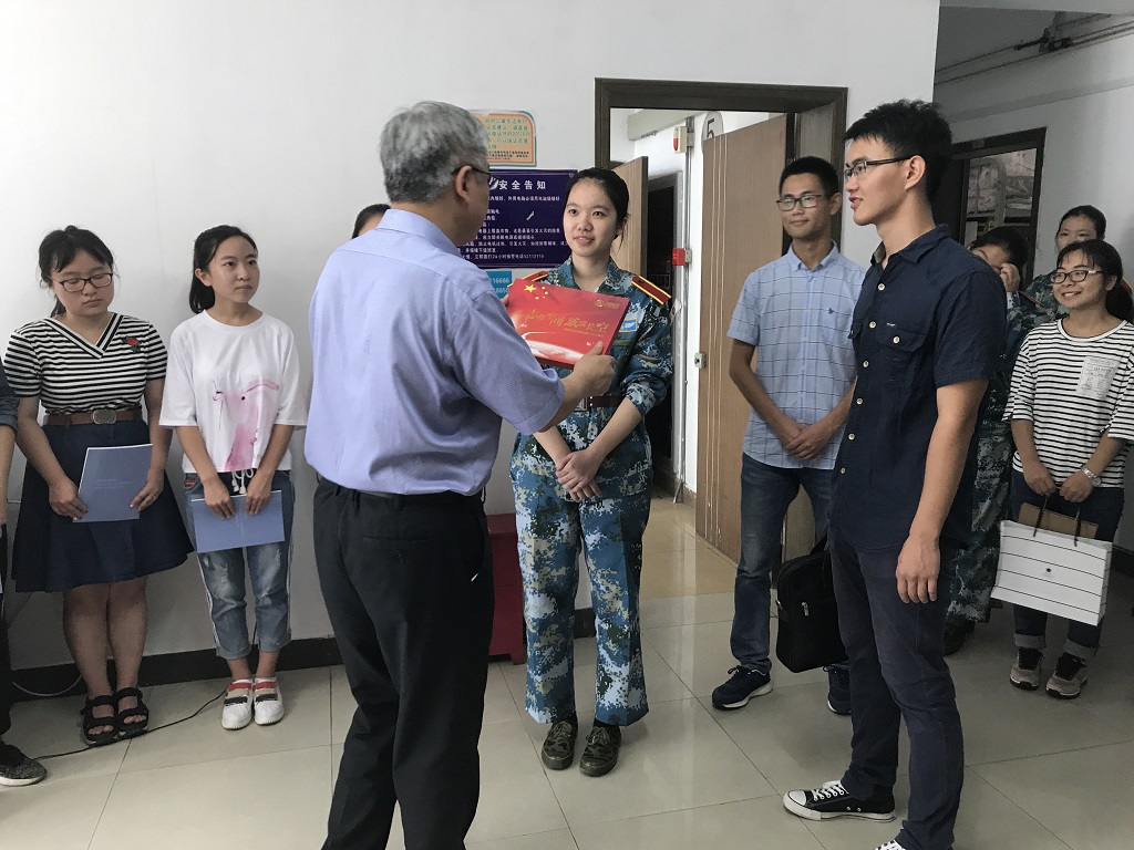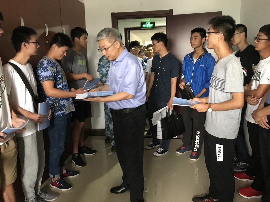 院长一行到达新生寝室,对同学们的到来表示欢迎,并与同学们亲切交谈,希望同学们能围绕学业出发,合理分配学习与娱乐的时间,多参加校内的各类活动,多去锻炼自己的综合素质,尽快适应大学生活,期待同学们能够培养航天人的品质与情怀,肩负起建设航天强国的历史担当。新生听了院长慷慨激昂、诙谐幽默的话语,对大学更多了一份憧憬与振奋。最后,院长向同学们发放了《英国正版365官方网站十周年志》,希望新生们能更好的了解英国正版365官方网站,也希望英国正版365官方网站能给新生一种家的归属感。随后,院长向学生代表赠送了《载人航天工程》和《志在长空,威震空间》的航天纪念品,鼓励同学们珍惜大学四年的美好时光,好好学习航天知识,报效国家。