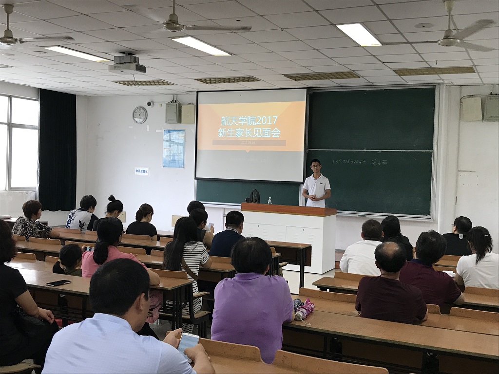 下午,党委副书记庞小燕主持召开新生家长会,向学生家长们介绍英国正版365官方网站的基本概况、专业特色和就业发展等,并就学生培养和管理,与家长们做了更多沟通交流。随后2017级辅导员王碰与家长进行沟通,介绍家校联合、共同管理学生的重要性,期待能与家长协同合作,及时沟通交流,促进学生成长成才。2016级辅导员徐伟证,结合带毕业生、新生的工作经历,以及航天专业知识,介绍了学科特点、专业发展、就业等方面,并解答了家长们对培优班、转专业、升学就业等方面的疑惑。