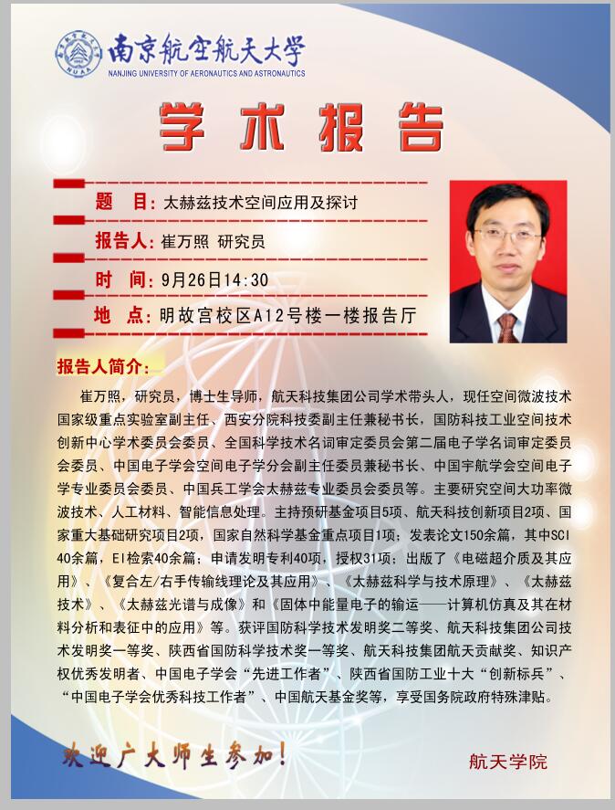 崔万照研究员学术报告——太赫兹技术空间应用及探讨