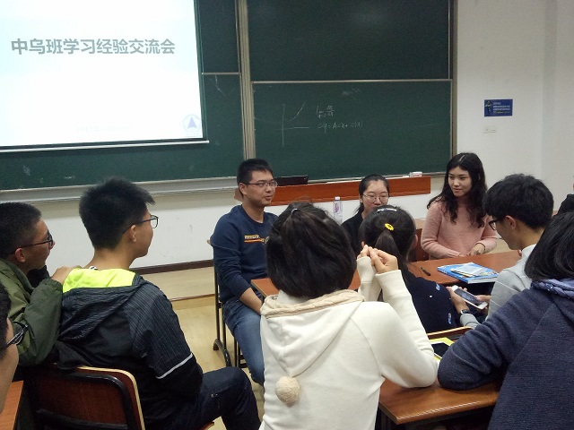 在领导老师解答完同学们的疑问后,三位学长学姐依次上台分享了他们难忘的学习经历和中乌班独特的学习生活。同学们在敬仰赞叹之余,更加坚定了更努力、变优秀的决心,希望未来自己可以达到学长学姐们的高度。会议最后,学长学姐和各位同学坐在一起,进行了面对面的交流。