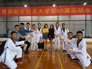 下午13点,跆拳道队员于体育中心一楼集合、进行准备,14点跆拳道比赛正式开始,航天学子高喊“寻天筑梦,问顶苍穹,航天航天,一飞冲天”的口号进场,他们精神抖擞,气势高昂,眼神坚定,动作干净利落、整齐划一,口号声响彻比赛赛馆。最终取得了跆拳道一等奖的好成绩。