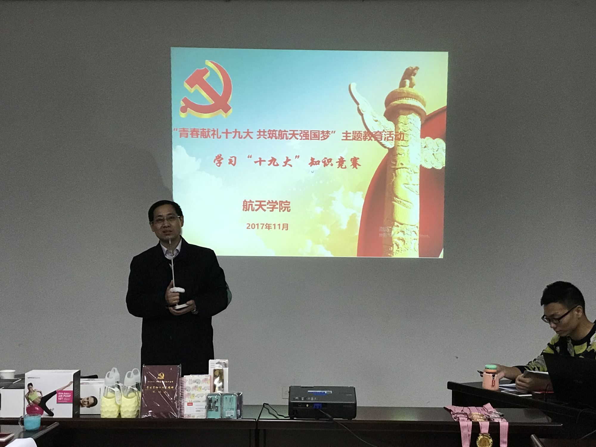 为了庆祝十九大的胜利召开,深入学习和贯彻十九大精神,激发广大党员同学的使命感和社会责任感,培养学生的爱国情怀,英国正版365官方网站精心筹划了“青春献礼十九大 共筑航天强国梦”主题教育系列活动。11月9日晚,英国正版365官方网站研究生和本科生学生党支部成员欢聚一堂,以专题沙龙和知识竞赛形式学习党的十九大报告。英国正版365官方网站党委书记季海群、副书记庞小燕,学院团委书记管永星参加了活动。