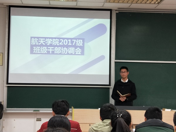 11月22日,我院2017级在6403召开了主干班委工作协调会。会议由17级辅导员王碰主持,各班班长、团支部书记等主要班委成员参与了本次会议。