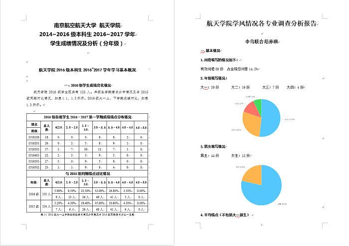 本次问卷调查涉及到本科生的专业满意度、日常学习状况、影响学业的原因、专业课程设置、班级和寝室氛围等各方面。对学困生的统计涵盖欠学分数量、班主任及本科生导师、不及格课程及开设学院等情况。学院对统计数据和分析结果高度重视,召开了全院教职工大会,党委副书记庞小燕做学风报告,反馈调研和分析情况,学院自上而下共同商讨具体举措来改善学院整体学风情况,加强学困生帮扶工作。
