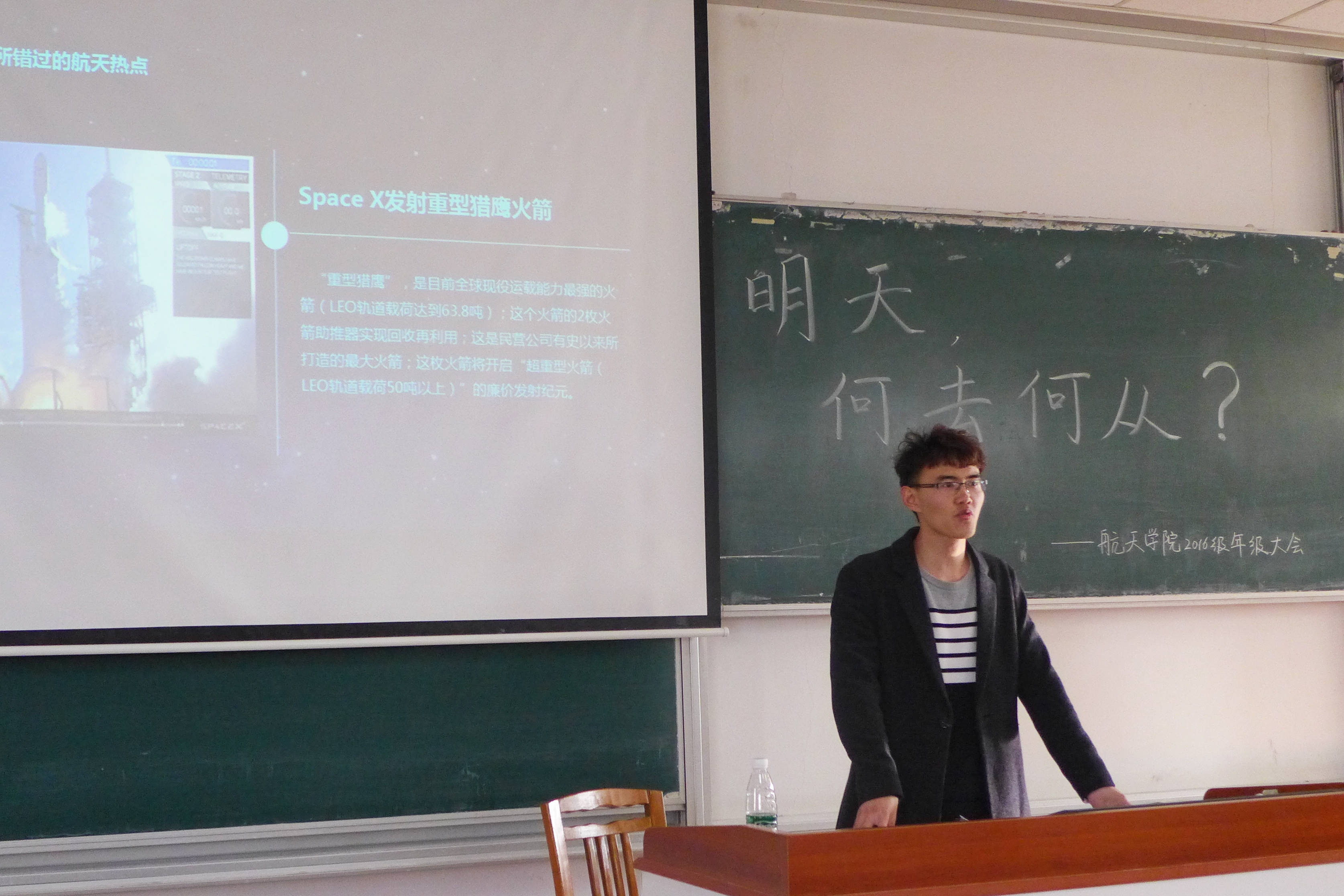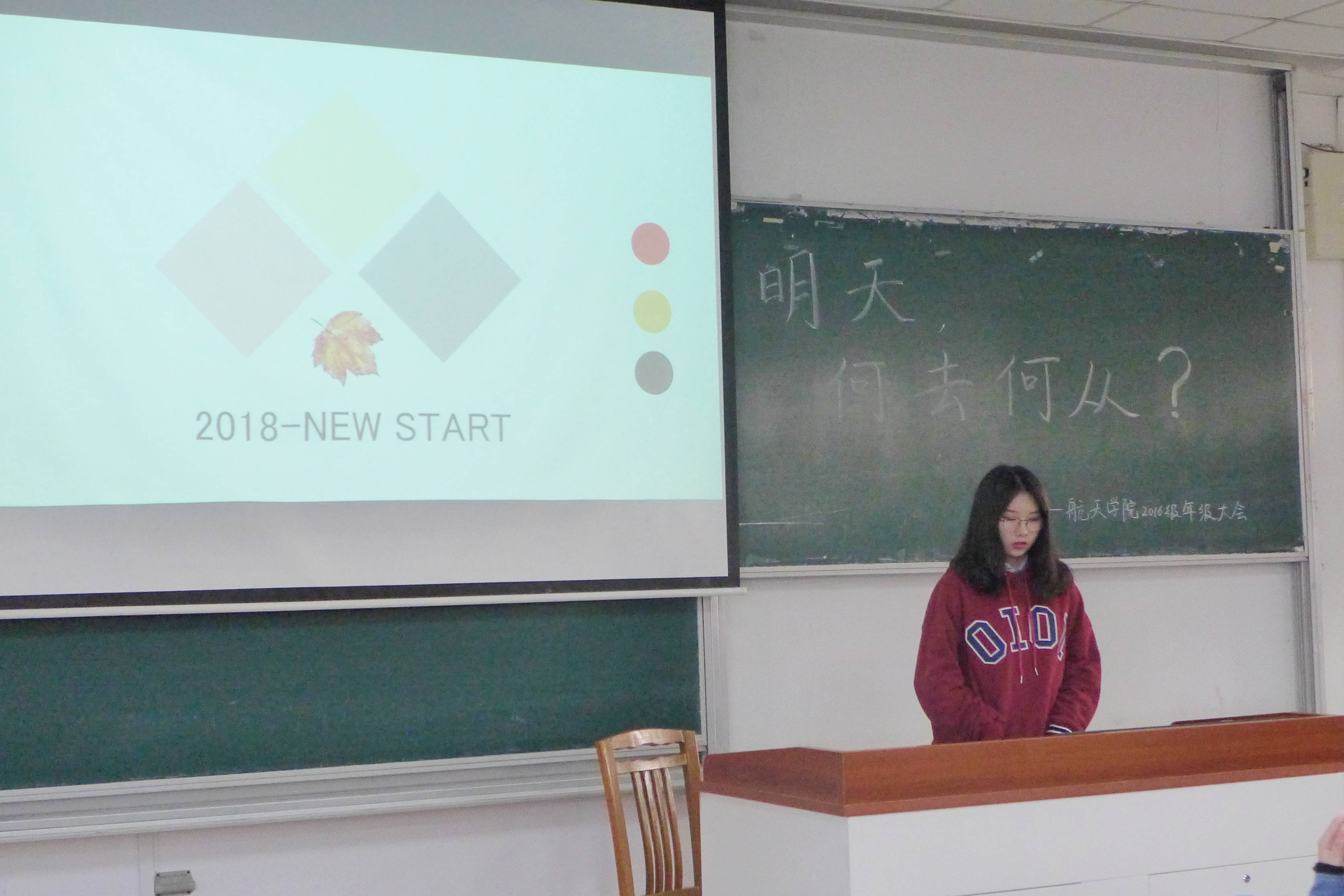 本次年级大会从国内外航天热点,学生未来规划,学期成绩分析,学习经验分享和新学期的目标等方面展开。首先,辅导员徐伟证为大家介绍了当下国内外航天时事热点以及我国今后航天事业的发展,提出我们这一代航天人需要具备的能力素养,激励大家关注航天发展,努力提升自己。然后,徐伟证带大家观看乔布斯在斯坦福大学毕业致辞的视频,从他的三个故事中感受大学和人生的道理,并进而分析了大学本科毕业的不同去向,即升学、出国和工作,分析不同选择的基础、优势和风险,鼓励大家尽早对自己的未来做出规划,从现在开始努力。