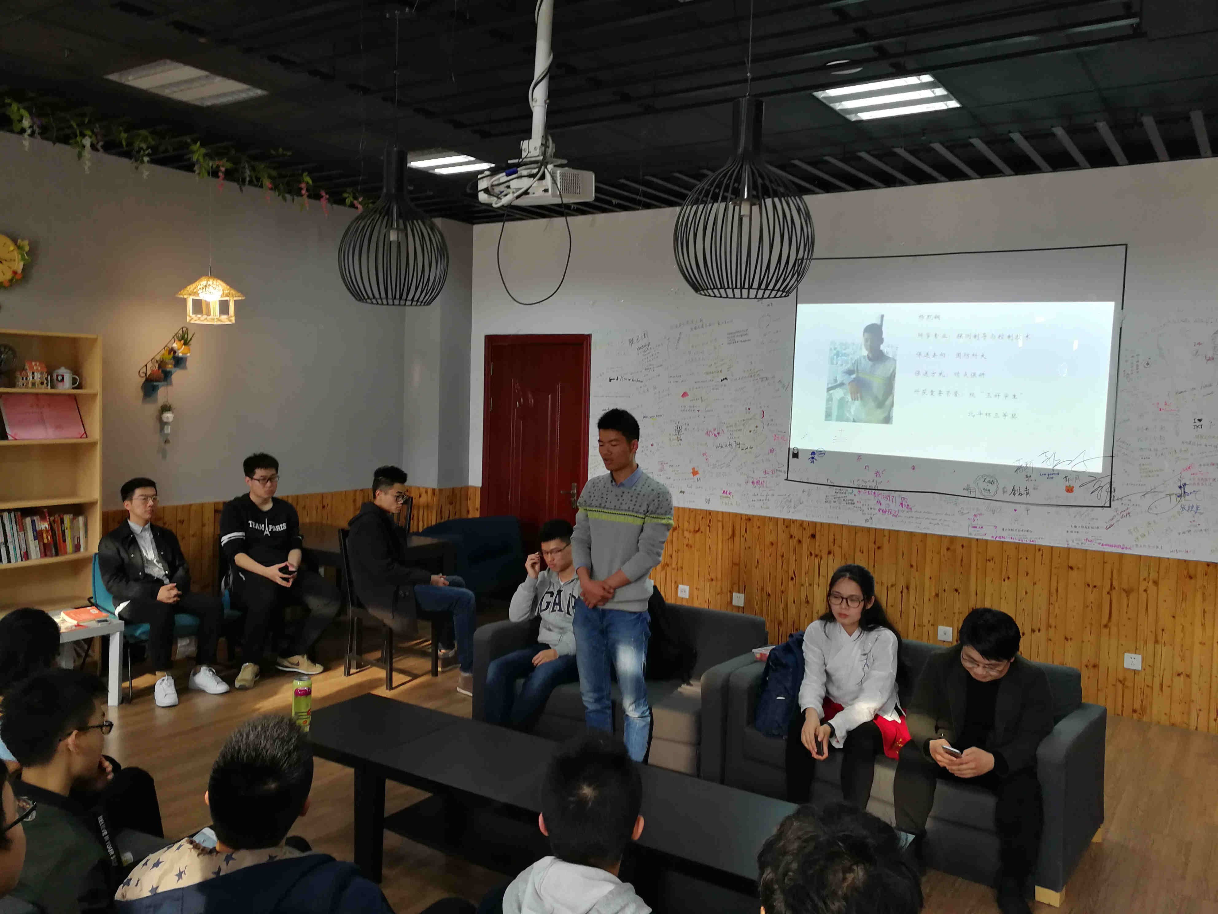 首先由杨凯铜同学介绍了自己的经验。他讲到,自己的保研路是一波三折的,告诫大家一定要坚定信心,不忘初心。