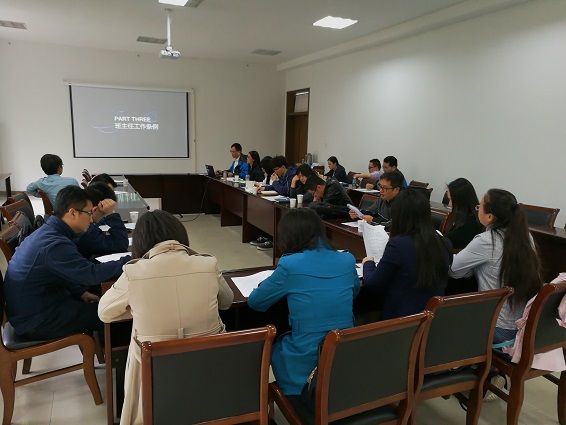 随后,庞小燕从考核要求、考评等级、工作指南等方面,详细介绍了本科生导师考核工作补充办法。王海涛从选聘与管理、工作职责、考核奖励等方面全面介绍了班主任工作条例,并分享了优秀班主任方美华的工作事迹,给与会班主任今后的工作做了引导。