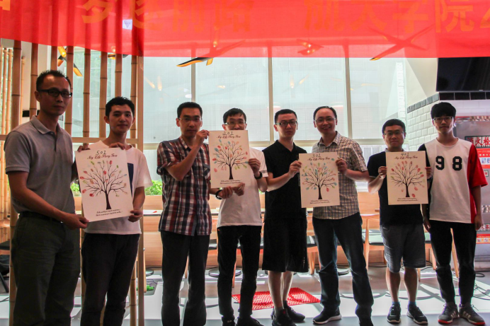 在活动开始前的半小时,同学们已经早早来到了此次活动的主会场——明故宫教师餐厅,即将分别的同学纷纷在海报前签名,合影,在指纹树上留下自己的印记,大家的指纹织就了多副美丽的图案。