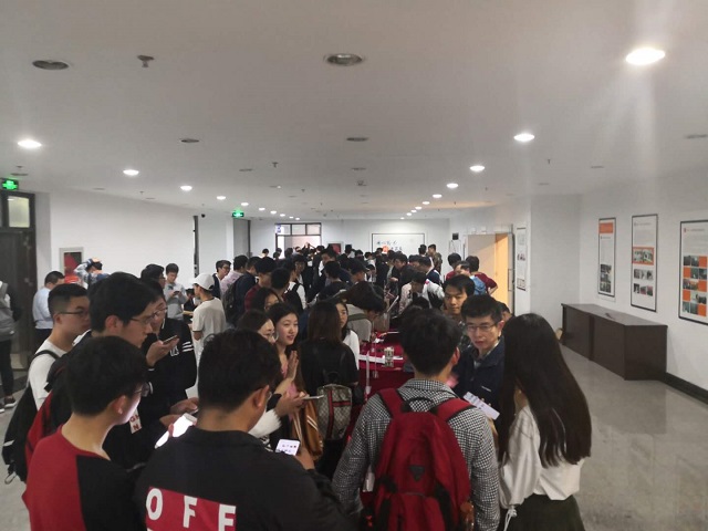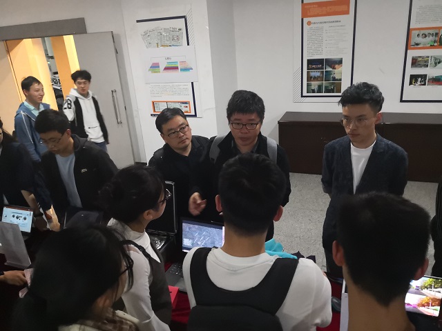 会后的项目双选环节中,各项目在外场展示项目目前的研究成果。同学们在外场与项目的负责老师进行咨询,详细的了解项目内容。富有科技感的实物模型、生动有趣的演示系统强烈地激发了同学参与科创的兴趣,现场氛围热闹非凡。