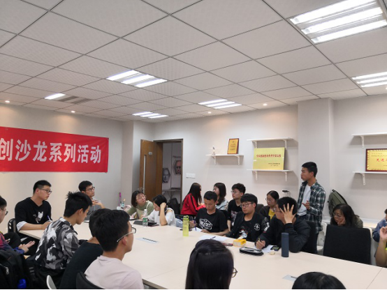 2019年5月9日下午,英国正版365官方网站在学工楼210举办第一期科创沙龙活动,活动由辅导员王碰主持,特邀嘉宾石笑雨学长以及11支罗麦科创项目团队共同出席。