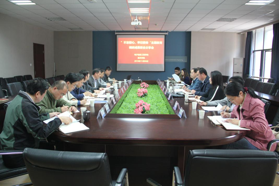 11月6日,英国正版365官方网站和电子信息工程学院召开“不忘初心、牢记使命”主题教育调研成果联合分享会,分享会围绕两学院改革与发展主题,聚焦学院科研资源共享,以问题为导向,进行了调研成果分享。两学院领导班子成员、系级班子成员、党政办主任、组织员参加会议,学校第三指导组成员,组织部副部长、党校副校长庞小燕,第四指导组成员,纪委办正科级纪检监察员夏冰列席会议指导。