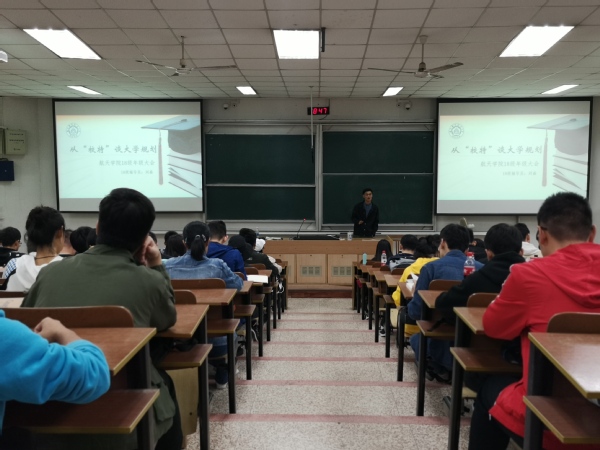 在会议开始之前,辅导员刘盛为同学们播放了《榜样》节目,在节目中叶培建院士带领嫦娥四号团队为观众解读了他们自己的航天情怀。会议开始后刘盛为同学们播放了叶培建院士在观看国庆观礼后回到学校做的演讲片段,并以此引出优秀的定义。为了让同学们更加深入的了解校长特别嘉奖,刘盛逐一讲解了校长特别嘉奖的评选标准和入选名单,使得同学们对优秀这个词有了更多的了解,并且通过对优秀学长学姐经历的解读,让同学们对于未来的大学生活有了自己的期待和目标,明白了自己该做什么怎么做。