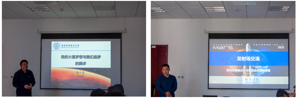 团队常务副总设计师张子建首先对火星信标项目进行了介绍,并与同学们分享研制期间团队认真实践、刻苦钻研的真实历程。团队主任设计师陈柏屹老师向同学们介绍了自己的研制内容以及团队的成果,参与信标研制的研究生向大家分享了自己的成长与感悟。