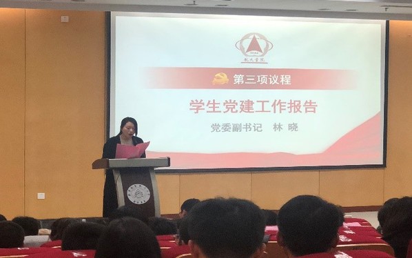 11月27日,中共南京航空航天大学英国正版365官方网站学生总支部委员会成立大会在将军路校区图书馆一楼报告厅召开。学院党委书记季海群、党委副书记林晓、组织员丁亮、团委书记崔灿、各年级辅导员以及140名学生党员参加了大会。会议由学院团委书记崔灿主持。