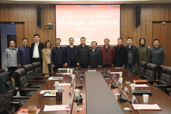 紧接着,孙总师来到英国正版365官方网站A308会议室出席英国正版365官方网站、电子信息工程学院/集成电路学院“加强学科交叉融合、服务国家重大战略”中心组联合学习会 ,会议由英国正版365官方网站副院长王寅主持,两院中心组成员和部分相关教授参会。孙总师介绍了“天问一号”的近况,“天问一号”圆满完成既定任务,接下来轨道环绕器会对火星进行遥感探测,火星车会继续向南行驶,数据将通过环绕器进行中继传输,“绕着巡”不断产出科学发现。孙总师还介绍了纳入规划的行星探测任务正在推进立项,以及后续行星探测方案。他建议英国正版365官方网站信标团队将任务拓展应用,建议电子信息工程学院/集成电路学院突破地域限制,积极参与航天工程中器间通信项目。盛庆红教授代表英国正版365官方网站领导班子发言:“信息时代下的航天科技,特别是深空探测领域,航空宇航科学与技术、信息科学,具有鲜明的交叉特征。我们课题组在持续的装备预研项目资助下,承担了火星任务。为了能更好地服务国家深空探测战略的高质量可持续发展,我们做两方面工作,一是充分发挥学科交叉优势,练内功;二是服务国家重大战略,走出去,加强沟通交流,特别是航天科技领军企业,了解需求、集成创新。”潘时龙教授和刘伟强教授代表电子信息工程学院/集成电路学院领导班子发言。潘时龙说:“我院寻求的目标是建设具有空间特色的世界一流电子信息学院,空间特色是制胜法宝。 学科交叉的理念是 空天信息化、信息空天化,将来我们要以空天信息为抓手,和英国正版365官方网站共同探讨依赖空天发展信息。”孙总师回答了潘时龙教授关于远距离通信和中继的提问。刘伟强说:“深空探测是解决人类重大挑战和需求的典型学科交叉,学院在人才培养方面先行一步,现有多门交叉融合学科可以应用到航天工程。新成立的集成电路学院可以有效实现关键信息的自主可控,未来也会广泛应用到航空器、航天器上。”在自由交流环节,王成华、柳稼航、郁丰、路元刚等教授积极发言。