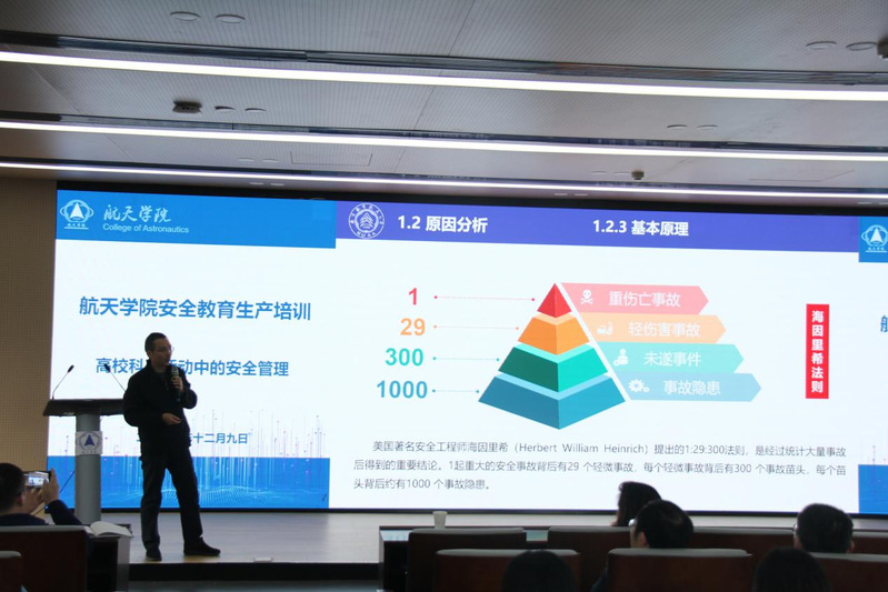 报告中,阎志军副处长列举了多起高校安全生产事故并分析事故原因,通过海因里希法则、破窗理论、多米诺骨牌效应、墨菲定律等原理,深度阐述了安全事故发生的内在机理;解读了《中华人民共和国安全生产法》、教育部和工信部关于安全生产工作的相关文件精神、学校实验室安全管理的规章制度,进一步强化了教职工安全生产责任意识;介绍了学校实验室的安全通识和高风险物品使用注意事项以及学校以往安全检查中发现的问题和整改的措施,提升了教职工的安全生产理论水平。他强调,安全意识是实验室安全的关键,导师和学生要树立安全意识和自我保护意识,要将被动式“要我安全”转变为主动式“我要安全”。