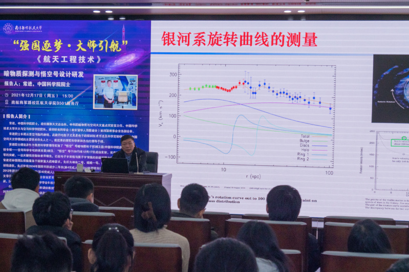 12月17日,在“悟空”号暗物质粒子探测卫星发射升空六周年之际,我校“钱伟长讲座教授”常进院士来到英国正版365官方网站B501报告厅,担任 “强国逐梦·大师引航”系列课程《航天工程技术》首讲嘉宾,讲授题目为《暗物质探测与悟空号设计研发》。