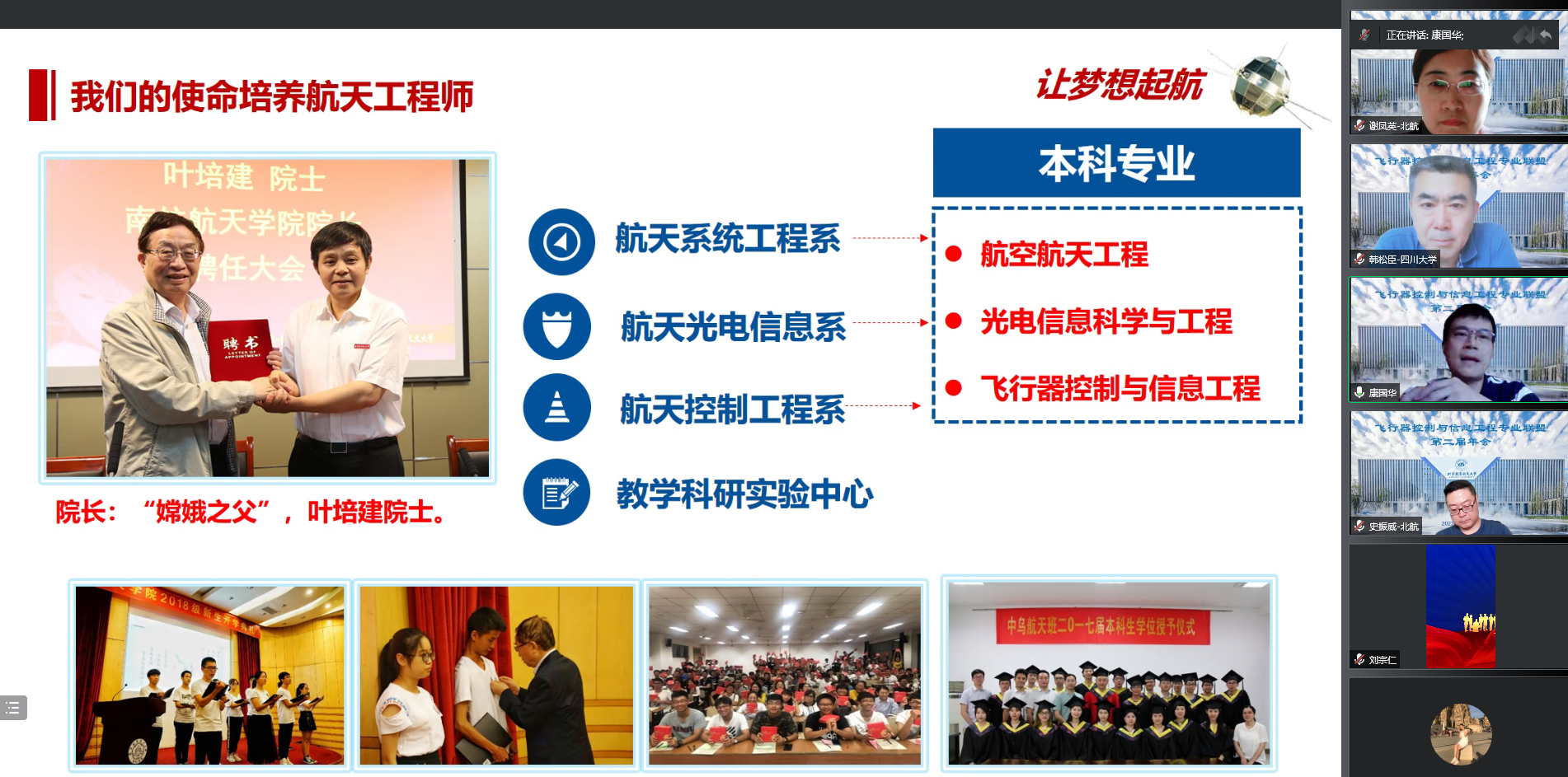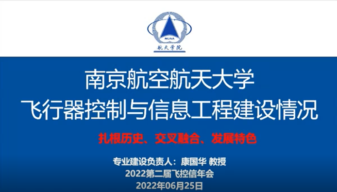 2022年6月25日,北京航空航天大学举办第二届“飞行器控制与信息专业联盟”年会,此次年会以线上形式开展,国内相关高校参与会议并进行专业建设汇报,南京航空航天大学英国正版365官方网站飞控信专业负责人康国华教授参加会议并做汇报,控制系本科教学副主任于丹参加会议。