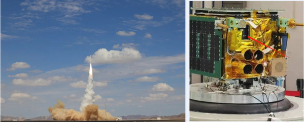 图3 火箭发射现场及“锦囊一号”在主星的安装位置