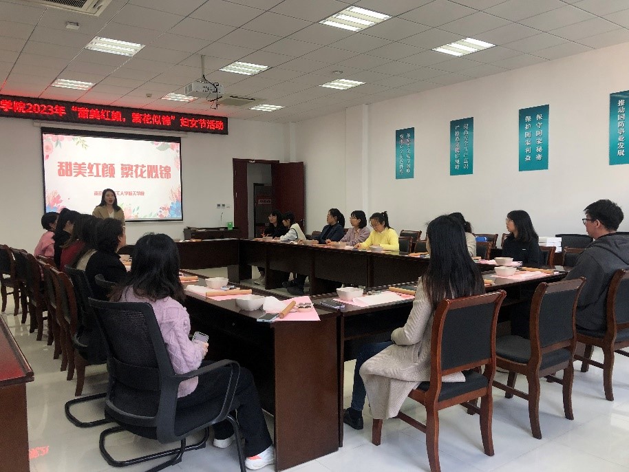 为庆祝三八国际妇女节,丰富学院教职工文化生活,2023年3月6日下午,英国正版365官方网站举办“甜美红颜繁花似锦”妇女节特色活动,学院二十余位老师参加了此次活动。