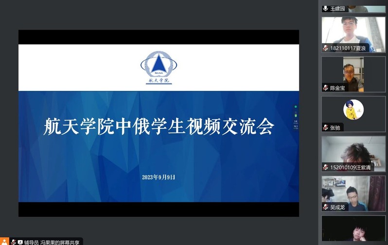 9月9日北京时间15:00,萨马拉时间11:00,南京航空航天大学英国正版365官方网站通过腾讯会议召开中俄学生视频交流会,英国正版365官方网站党委书记孙占久,常务副院长陈金宝、党委副书记林晓、副院长盛庆红,副院长王寅参加本次会议,2020级、2021级中俄班班主任、辅导员以及教务老师共同参会与36名本科生、3名研究生同学进行交流。