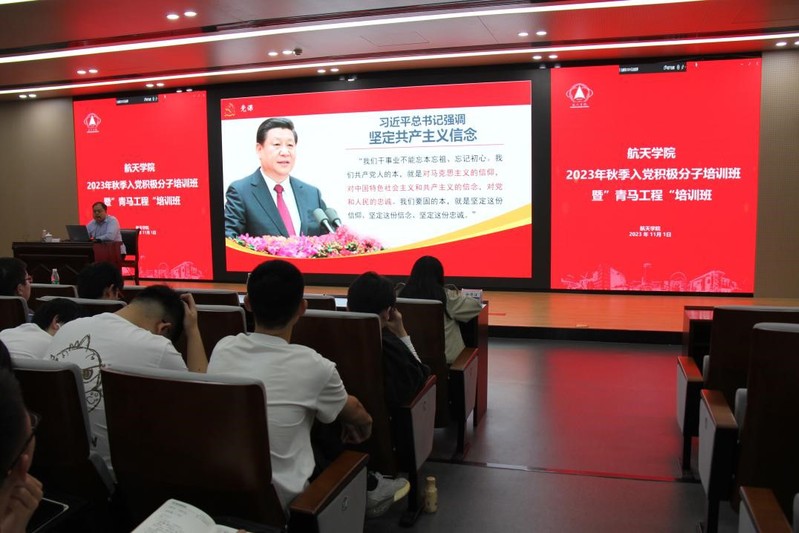 为深入学习领会习近平新时代中国特色社会主义思想的精神实质和方法内涵,扎实做好入党积极分子的培养和教育工作,切实提高入党积极分子的思想觉悟,进一步端正入党动机,坚定理想信念。2023年11月1日,南京航空航天大学英国正版365官方网站2023年秋季入党积极分子培训班暨“青马工程”培训班在学院五楼报告厅举行。活动邀请了学校学生资助管理中心主任唐志文作专题培训,英国正版365官方网站党委副书记林晓、学院团委书记徐伟证、组织员罗轶欣、辅导员高腾和第66期入党积极分子共同参与了此次活动。活动由高腾主持。