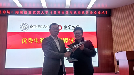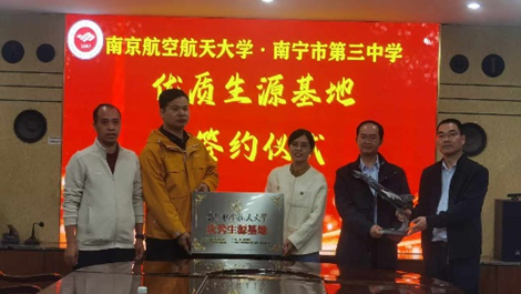两所中学均是广西首批重点中学、广西首批示范性高中、中国百强中学,长期以来为南航输送了大批优秀的毕业生。此次宣讲会上,李金旺向到场的同学介绍了南航的招生政策和人才培养特色,并做了题为《日常生活与航空航天热控技术》的讲座。招生组与中学就人才培养、招生政策等方面进行了交流,庞小燕代表学校与两所中学分别签订了优秀生源基地共建协议,并赠授“南京航空航天大学优质生源基地”牌匾,朱旭东代表学校向中学赠送飞行器模型。双方表示将进一步加强合作与交流,共同构建优秀生源培养机制。